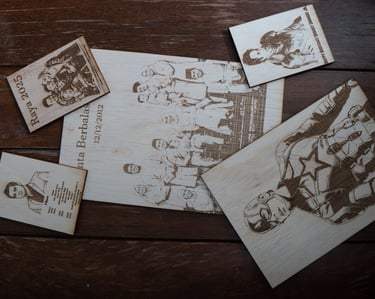 Abadikan Foto Kegemaran Dalam Bentuk Ukiran Kayu. Gambar dalam phone selalu terpadam, tapi ukiran di atas kayu akan kekal selamanya. Dari saiz poket (3R) hingga saiz hiasan dinding (A4), jadikan memori anda lebih berseni dan klasik. Sesuai untuk hadiah anniversary atau hari jadi.